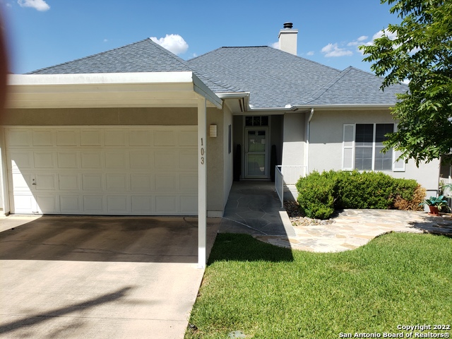 PRICE REDUCTION ON DARLING HOME WITH HILL COUNTRY & LAKE VIEW! Lovely living/dining area with fireplace & built-in shelves! New vinyl flooring throughout! Stainless & granite eat-in kitchen! Split-bedroom floor plan, great master suite! Screen porch, plus deck on two sides! One block to the golf course, three blocks to shopping, and just a few minutes to Comal Park and boat ramp! A very welcoming community, and short-term rentals are allowed!