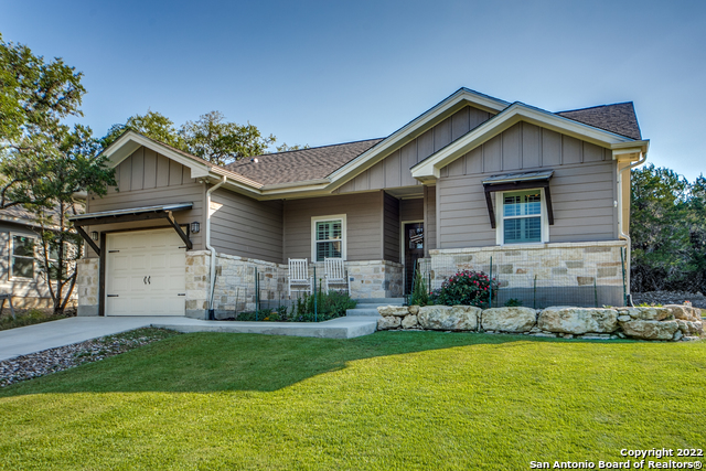 Welcome to your cozy 3 Bedroom/2 Bath Home, situated in Cypress Cove. A slice of country living, peace and quiet at its finest! This beautiful Home was established in 2018, it is extremely loved and gently lived in. The open floorplan is perfect for entertaining guests and loved ones. Your kitchen features plenty counter space and a sizable center island for additional dining options. The primary bedroom and the guest bedrooms are on opposite sides of the home allowing for guests or family quiet time and privacy. The primary ensuite bathroom includes a dual vanity and an oversized walk-in shower. After a long day come Home, kick back, relax and take in the fresh air while you rest under your covered patio and watch your family enjoy the tree-lined backyard. If you enjoy sitting on the front porch there is plenty of space to bring your rocking chair for morning coffee. Enjoy a beautiful sunrise or sunset on either side of your Home. Cypress Cove Community has an abundance of amenities for the outdoor enthusiast: water access, pool, tennis, parks/playground and basketball court, and its home to boat ramp 11, which is only 1.5 miles away. If you enjoy taking an evening stroll, you will probably spot a few deer grazing in the neighborhood. This stunning home is centrally located to San Antonio, Austin & Hill Country.