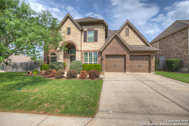 Gorgeous home in the highly sought after Oak Run is ready for its new owners! This beautiful Perry Home is loaded with space! 4 large bedrooms, 3 full baths, including a Jack and Jill bath, one half bath, formal dining, study, breakfast nook in the kitchen, loft and media room upstairs. The spacious and open floor plan features vaulted ceilings, stone fireplace, floor to ceiling windows and no carpet downstairs! The kitchen is open to the family room with an oversized island, stainless steel appliances, granite countertops, gas cooking and a butlers pantry. Retreat to the master suite that is spacious enough for a sitting area. The full bath includes dual vanities, two walk-in closets, linen closet, garden tub and an oversized walk-in shower. Relax on your back patio with custom electric solar shades. Close to San Antonio and Austin. ***Multiple offer situation: Please submit best offer by 11:00 am, Saturday, May 14.