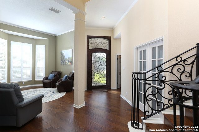 Previous buyer was waiting on a medical license and we held the property for them for 7 months, and just now got denied and unable to go through with the purchase. Come take a look at this beautiful home with 3 BR, 2 1/2 bath, two living areas, study, loft and dining room. Open floor plan with high ceilings, engineered hardwood floors , granite counter tops, tucked into the desirable Deer Hollow neighborhood. Neighborhood amenities include a swimming pool, basketball court, playground and clubhouse just a short walk away. Quick access to 1604 and 281 for all your shopping and dining needs. Recent upgrades include Plantation Shutters installed through most of the house, hand crafted iron front door, ornate iron stair and loft railing, new total yard landscaping by Greens & Blooms with add-on bbq porch, remodeled master closet with pull out drawers, pants rack and stool, Phillips voice command hue lighting throughout house, outdoor electric panel with generator hook-up, Ring security front door, driveway and back yard.