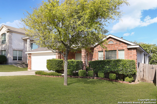 You won't want to miss out on this immaculate single-story brick home in the desirable Sierra Vista subdivision. Inviting curb appeal with a patio to soak in the sun or enjoy your morning cup of coffee. Open floor plan with carpet and laminate flooring throughout main areas. Upon entry, you will be greeted by a spacious living/dining area and study with bright lighting throughout. Leading into the kitchen, you will be pleased with storage, appliances, new quartz countertops, breakfast bar, and convenience to an eating area. Wall arches leading into the additional living area with a fireplace and outdoor access. Master bedroom is large with a full bath, and a walk-in closet. *Master bath has double vanity sink, garden tub and walk-in shower* Utility room inside. Huge backyard, perfect for entertainment with mature trees. Easy access to major highways, close to SeaWorld, Lackland and more!