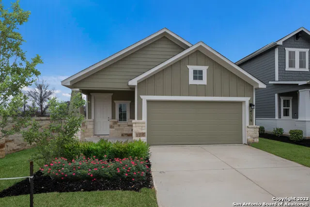 ** MOVE-IN READY PACKAGE WITH FRIDGE, WASHER, DRYER AND BLINDS ** The Jesmond home design by Scott Felder Homes features an open concept one story with 3 bedrooms, 2 baths, and 1,383sqft. The eat-in kitchen host many upgraded selections such as beautiful white quartz counter tops, tile backsplash with a marble-like finish, white cabinets, a 10" deep sink, and a 5 burner gas cook top. The master suite showcases a coffered ceiling adding a level of dimension to the room, two large windows bringing in natural light, a walk-in shower, walk-in closet and dual vanities. You'll find luxury vinyl plank flooring throughout the common areas. Picturesque craftsman style exterior with white trim, grey siding and chopped cave stone.