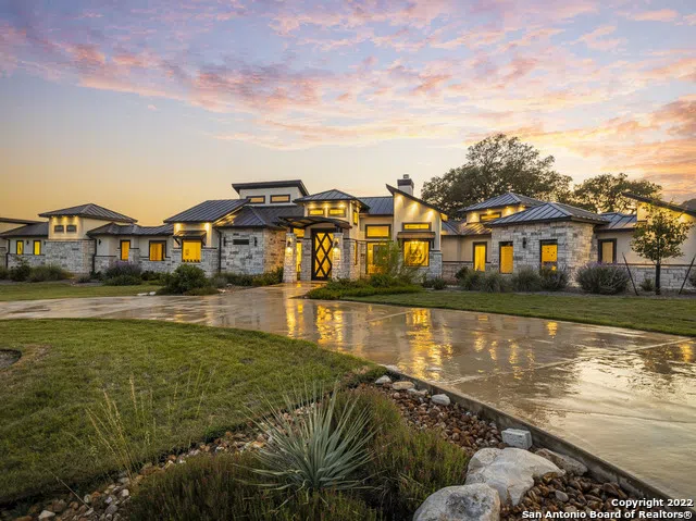 THIS IS A ONE OF A KIND ARCHITECTURAL MASTERPIECE WITH AN OPEN CONCEPT AND DESIGN! Award winning custom home just under 3900 square feet with 4 Bedrooms, 3 Bathrooms, a Library, Study room, Computer Nook, Exercise room and an Interior Courtyard off of the Primary Suite. As you approach the home, you are greeted by a massive 10' tall custom made iron pivot door. Entering into the foyer, a tall accent stone archway leads you into the living space where you instantly have views to the rear porch and backyard through a massive 10'x20' sliding glass door directly off the back of the Great Room. The Great Room also hosts a grand 50" fireplace with a beautiful wood casing mantel, as well as eye catching painted beams in a grid pattern in the ceiling. A gorgeous segmented stone archway provides a sense of separation between the Great Room and Kitchen within this open concept floor plan. The Kitchen hosts a 10' wide island with storage all the way around, Quartz countertops, a hidden pantry, and one of a kind floating beams mounted in the ceiling. The Primary Suite includes a Computer Nook off of its entry and an intimate reading area dressed up with a stone wall that really captures your attention. The Suite also features a freestanding tub with a stone backdrop, a barrel ceiling with cove lighting, his and her vanity's with toe kick lighting, a Sauna and a view into the Interior Courtyard of the home. The shared Primary Closet features a connection to the Laundry Room, making this design extremely functional. The Exercise room overlooks the Interior Courtyard with access from the Primary Suite as well. With an oversized 3-car Garage and plenty of parking for guests, this home has everything you could ever want in a custom home! Located in the sought after Vintage Oaks Community.