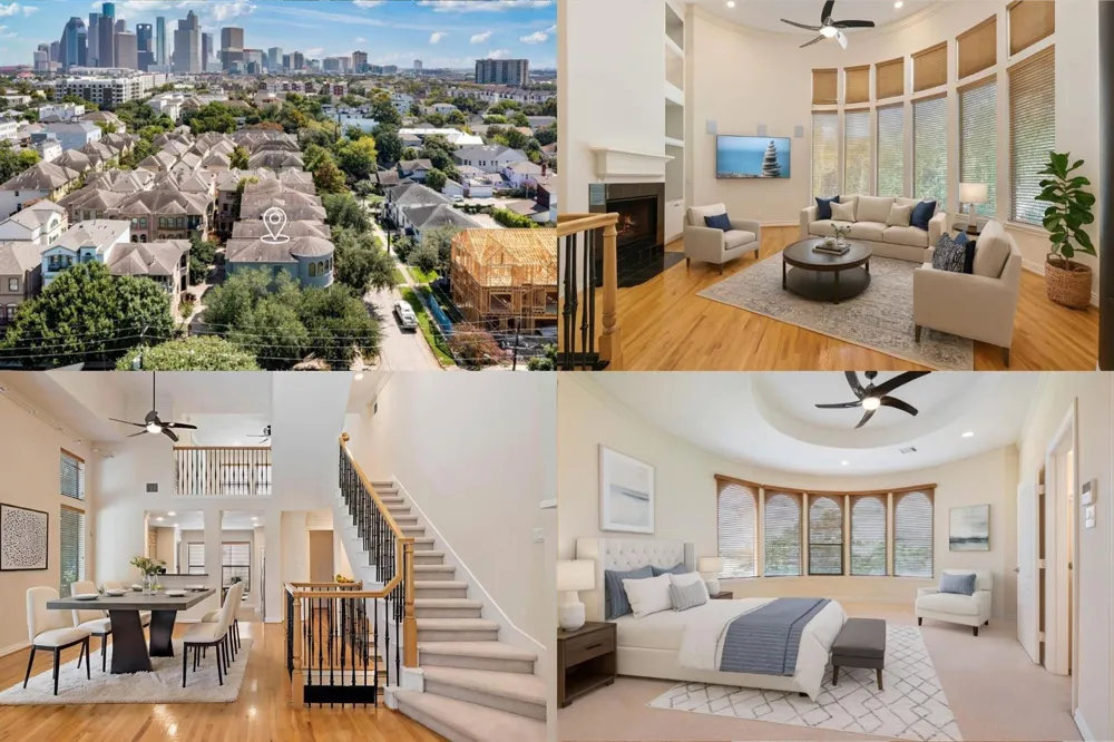 Welcome to 628 Bomar Street, a Montrose treasure blending timeless charm with thoughtful modern updates just minutes from downtown. Golden wood floors, abundant natural light, and sweeping skyline views create a warm, inviting atmosphere from the moment you enter. The open living and dining areas flow seamlessly into a beautifully refreshed kitchen featuring updated flooring, a new designer faucet, and top-of-the-line Bosch appliances. Step onto the private balcony for quiet mornings with coffee or evenings under the city lights. Recent improvements offer peace of mind, including fresh stucco and exterior paint, a new AC system, a new electrical panel with warranty, and a freshly painted garage. A premium home theater transforms nights at home into a cinematic experience. In the heart of Montrose, enjoy Buffalo Bayou Park, the Montrose Library, and the area’s vibrant dining, shopping, and art just outside your door.